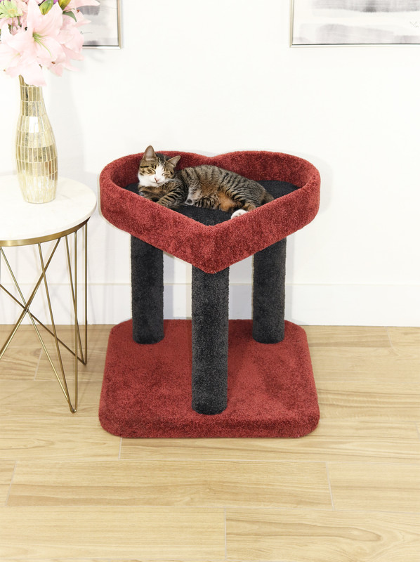 Give your feline the perfect spot to relax, nap, and keep an eye on their kingdom with this stylish Heart-Shaped Cat Perch. Designed with love, this elevated lounge features a plush, carpeted heart bed supported by sturdy black posts, making it as durable as it is adorable.