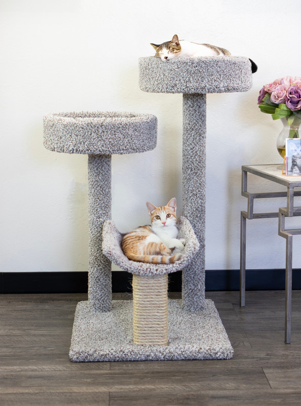 New Cat Condos Multi-Level Cat Perch features 3 levels of fun and stands at the perfect height for your kitties to gaze out their favorite window and relax in their own personal space. The purrfect perch for households in which your furry friends will fight over the perches. This cat perch will provide 2 perches at slightly varying levels so each can enjoy their own space. Also featuring multiple posts to encourage positive scratching behaviors. Proudly hand crafted in the USA with high quality materials.