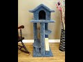 New Cat Condos Pagoda Cat House is your bestselling option to bring an element of style into your home while at the same time not sacrificing premium features. An elegant Asian aesthetic and trendy asymmetrical design combine to make this one of our best options at an affordable price. Featuring three full height carpeted scratching posts, two u shaped hammock style pet beds, an angled scratching post on the bottom level for kitties that enjoy stretching while they scratch, and to top it all off an immense cat condo with carpeted interior reminiscent of Asian style architecture. If that were not enough the top of the pagoda doubles as an extra perch for those kitties that just have to be up above it all. Comes in five vibrant colors to match even the most sophisticated décor. Handcrafted in our USA based workshop. No taxes added and free shipping to your home. Here at New Cat Condos we strive to provide quality cat furniture at affordable prices!