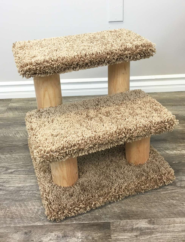 Our Solid Wood Pet Stairs can be used for cats and dogs and are an awesome piece of furniture that can be used around the house. These stairs are constructed from solid Wood peeler cores for strength and durability. These stairs are perfect for Multi-Pet households for use in helping your Animal reach a higher bed, or are extremely helpful for any Animal with hip and joint problems. The stairs are made with solid wood cores and the steps are carpeted with household carpeting which helps with shock absorption, and are built Tough to provide ease and comfort for years to come! These stairs arrive to you fully assembled, and are proudly handcrafted in the USA.